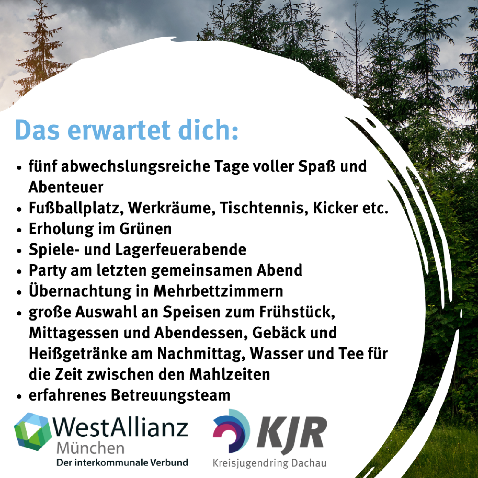 Im Rahmen der WestAllianz München arbeiten die sieben Gemeinden Bergkirchen, Gröbenzell, Karlsfeld, Maisach, Odelzhausen, Pfaffenhofen a. d. Glonn und Sulzemoos in den Arbeitsgruppen zu den Themen "Bildung und Wirtschaft", "Energie", "Kultur", "Mobilität", "Naherholung und Tourismus" sowie "Wohnformen und Bevölkerungsentwicklung" interkommunal zusammen. Gemeinsam entwickeln sie Projekte, von denen alle Gemeinden profitieren, und setzen sie um. Die Jugendfreizeit 2026 ist ein Projekt aus dem Bereich "Kultur" und wird, wie auch im Jahr 2024 und 2025, in Kooperation mit dem Kreisjugendring Dachau umgesetzt.